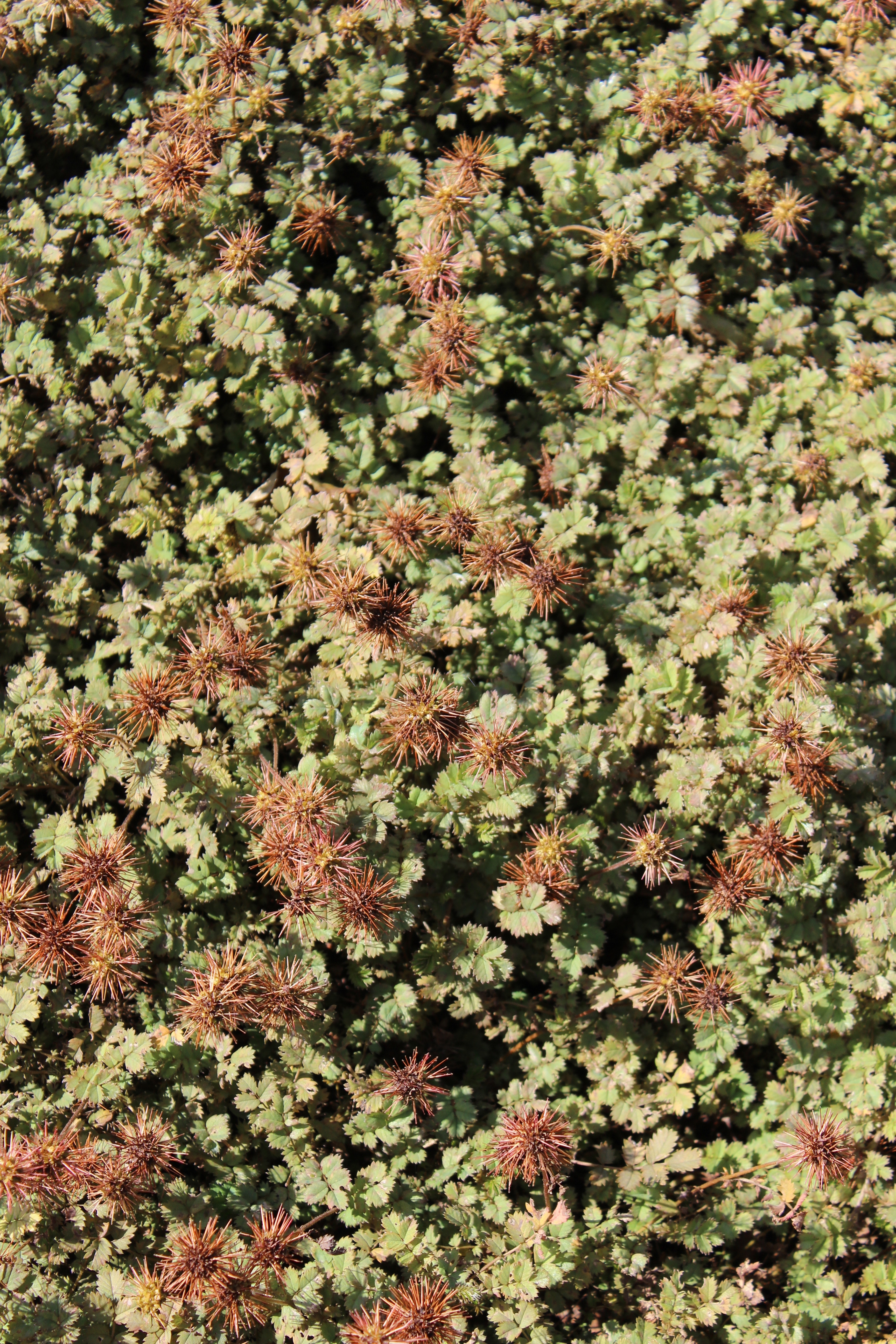 Zodenvormend en bodembedekkend plantje met geveerd samengestelde kleine groen-bruine blaadjes. Bloeit met weinig opvallende bloempjes, welke wel gevolgd worden door opvallende roodbruine stekelige vruchten. Voor elke normale, niet te natte bodem.