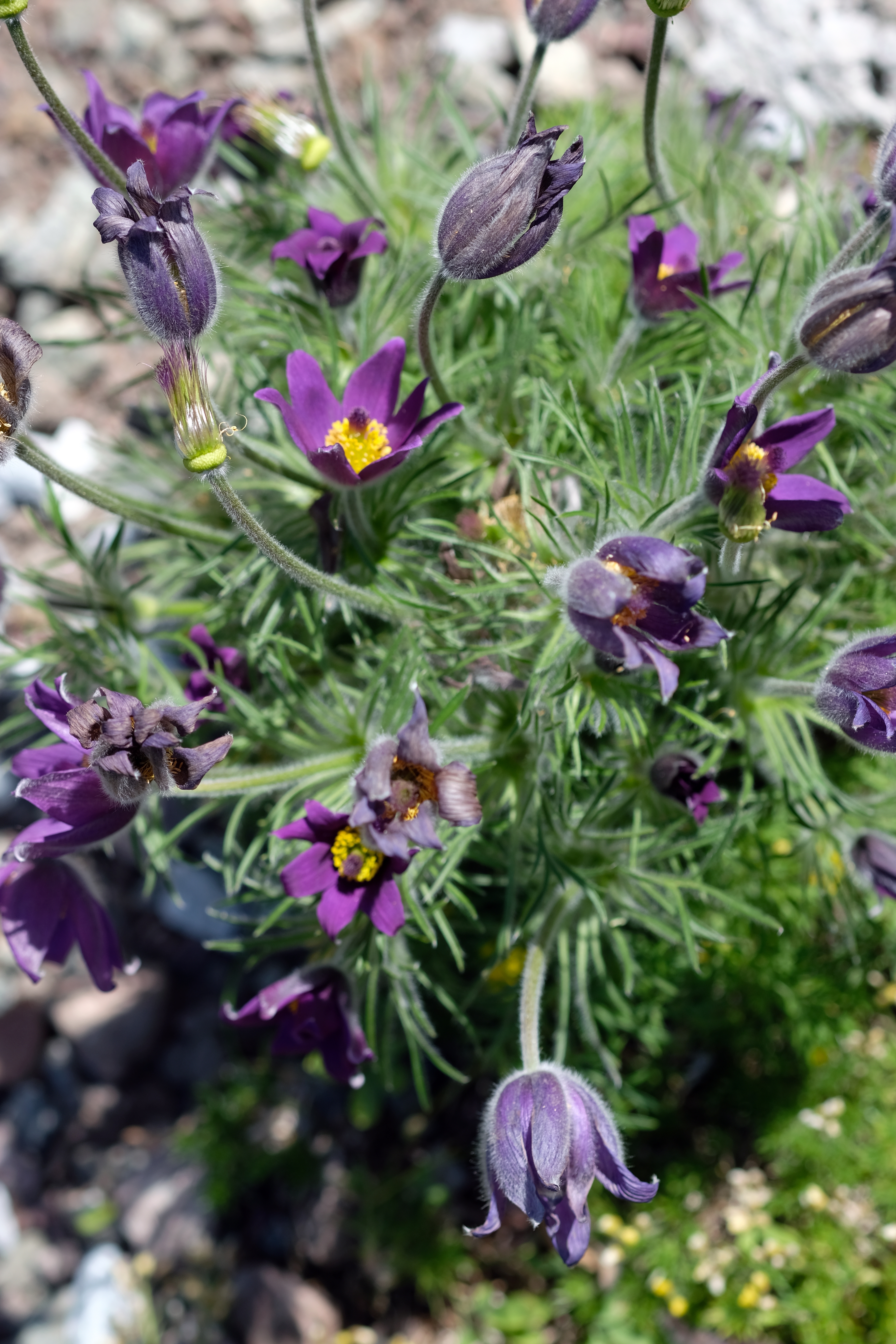 Deze planten vallen op door de dichte zilverachtige beharing van de dubbelgeveerde bladeren, wat vooral bij het uitlopen in de lente sterk opvalt. De violetpaarsrode knikkende bloemen zijn klokvormig; ook de omwindselbladeren onder de bloemen zijn zeer decoratief, vooral vanwege de zilverachtige beharing. Na de bloei verschijnt mooi zaadpluis. Houdt van een zonnige standplaats en een goed doorlatende, liefst kalkhoudende grond.