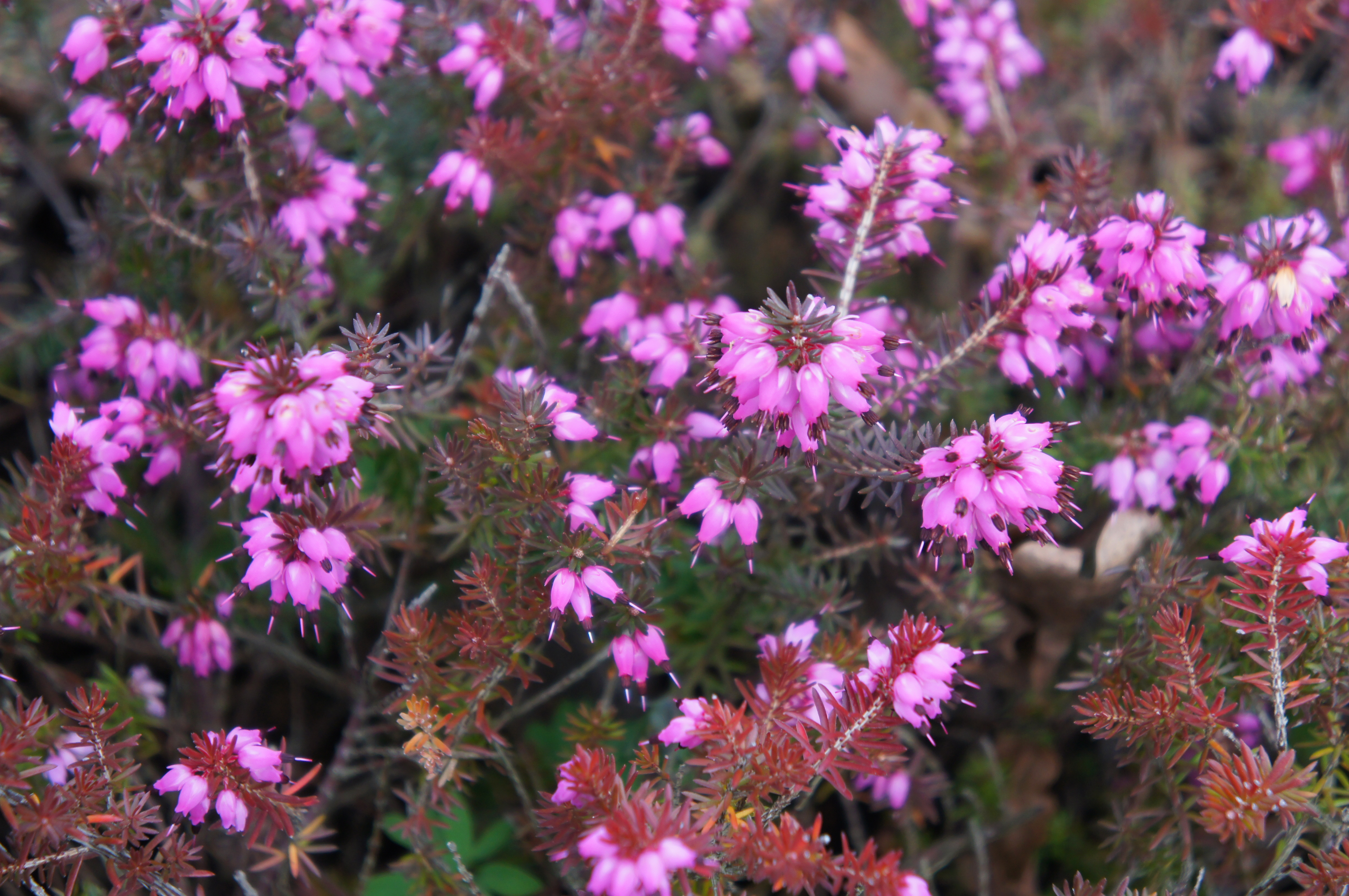 Laagblijvende heide met donker bronsgroen loof; wordt 20 cm hoog. Bloeit in maart - april met donker wijnrode bloemen. Verkiest een zure humusrijke vochthoudende grond. Direkt na de bloei in de lente kort terugsnoeien geeft de mooiste planten.